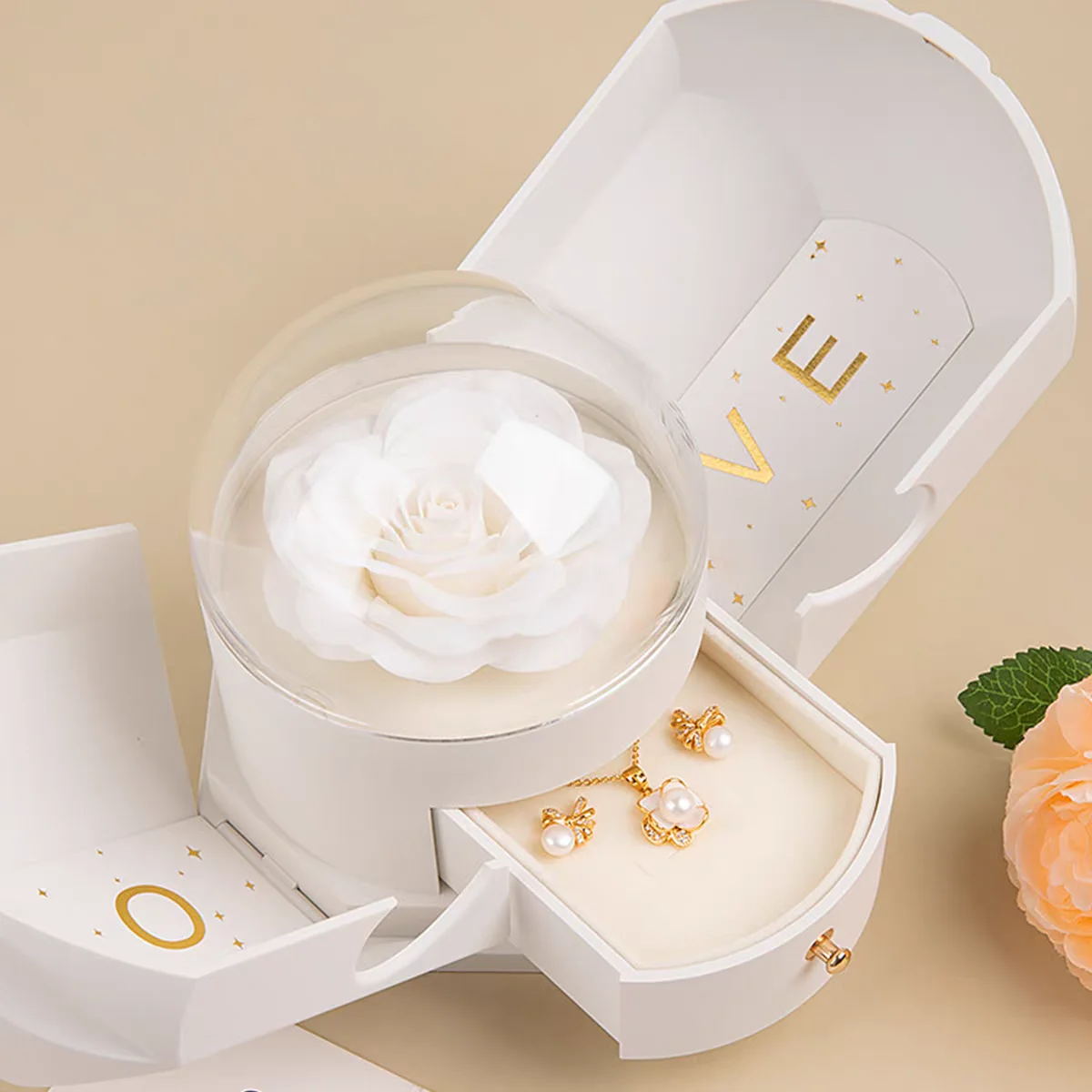 Surprise Flower Jewelry Box – Mysterious Unboxing with Rose Gold Dried Flowers & Hidden Love Drawer – Luxury Birthday Gift for H