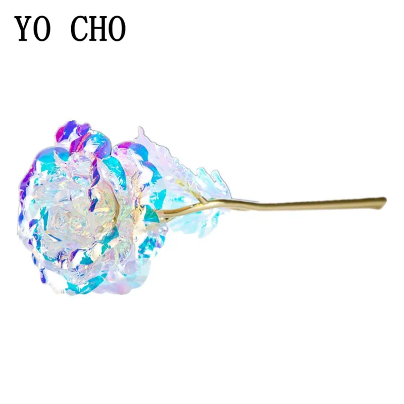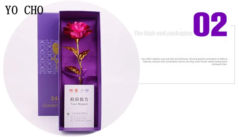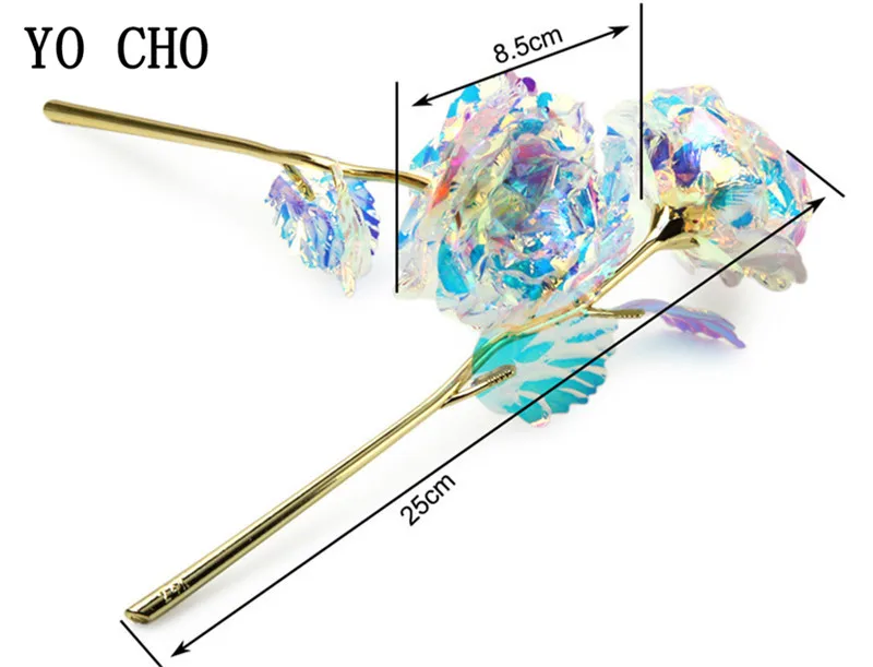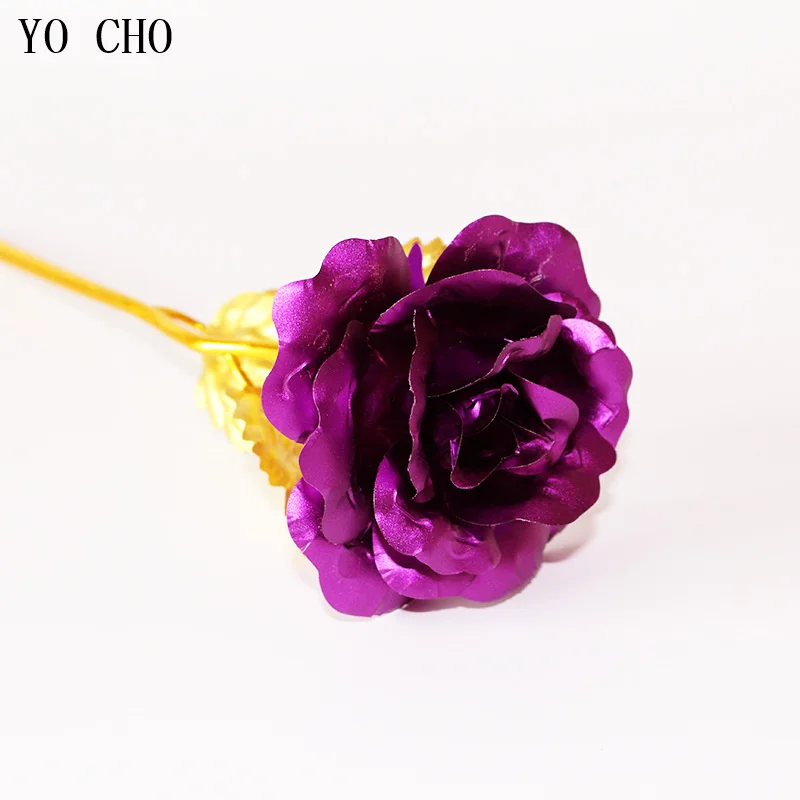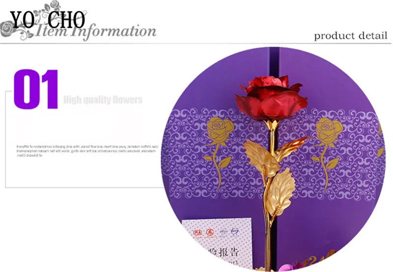 YO CHO Valentine’s Day Creative Gift 24K Foil Plated Rose Gold Rose Lasts Forever Love Wedding Decor Lover Lighting Roses Creative Gift